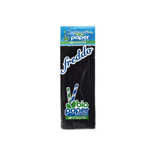 Καλαμάκια Freddo bio papper, ίσια μαύρα χάρτινα βιοδιασπώμενα, 40τμχ